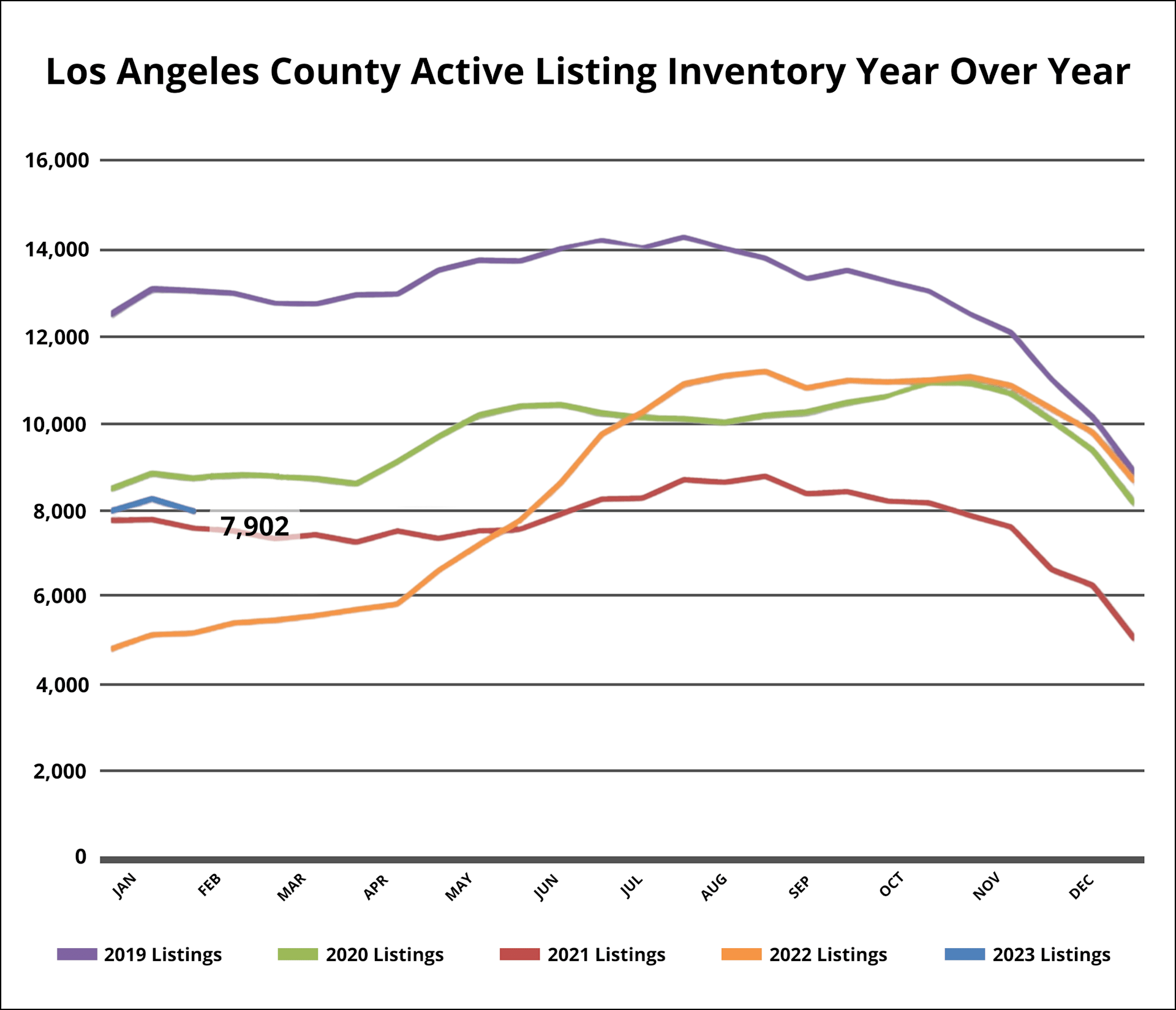 In the last several weeks, demand, a snapshot of the number of new escrows over the previous month, rose from 2,269 to 3,131, gaining 862 pending sales, up 38%. Since February 2021, the demand had increased at its greatest rate. 2022's market for steadily rising mortgage rates is now in the past. Rates have fluctuated between 6% and 6.5% since December, bringing greater stability and encouraging many buyers who had been put on hold to pick up the hunt for a property. The pattern of progressively declining inflation makes it seem as though the days of interest rates above 7% are now a distant memory. Expect the demand to increase quickly over the entire month of February. It will result in more demand if mortgage rates decline over time to below 6%.