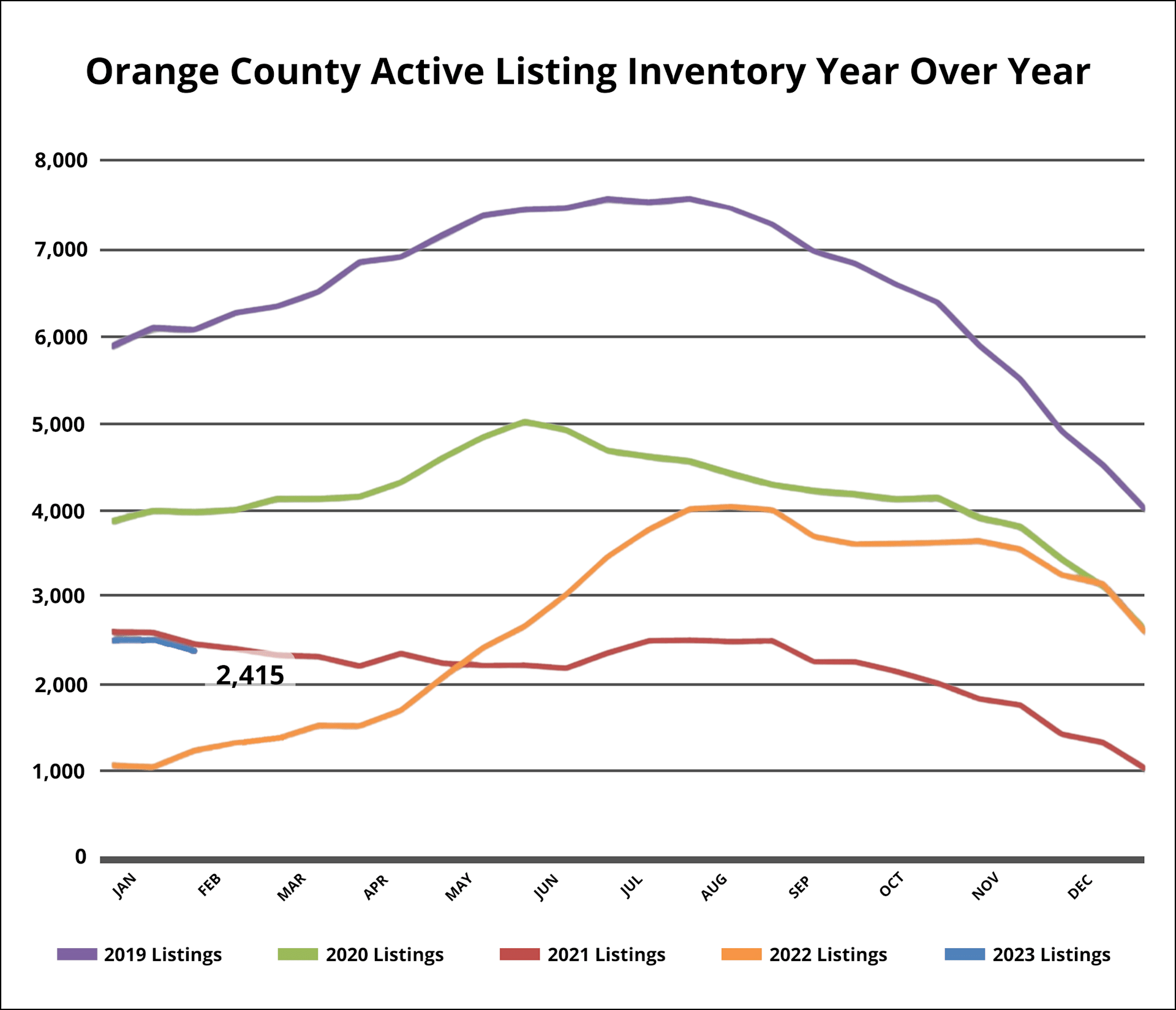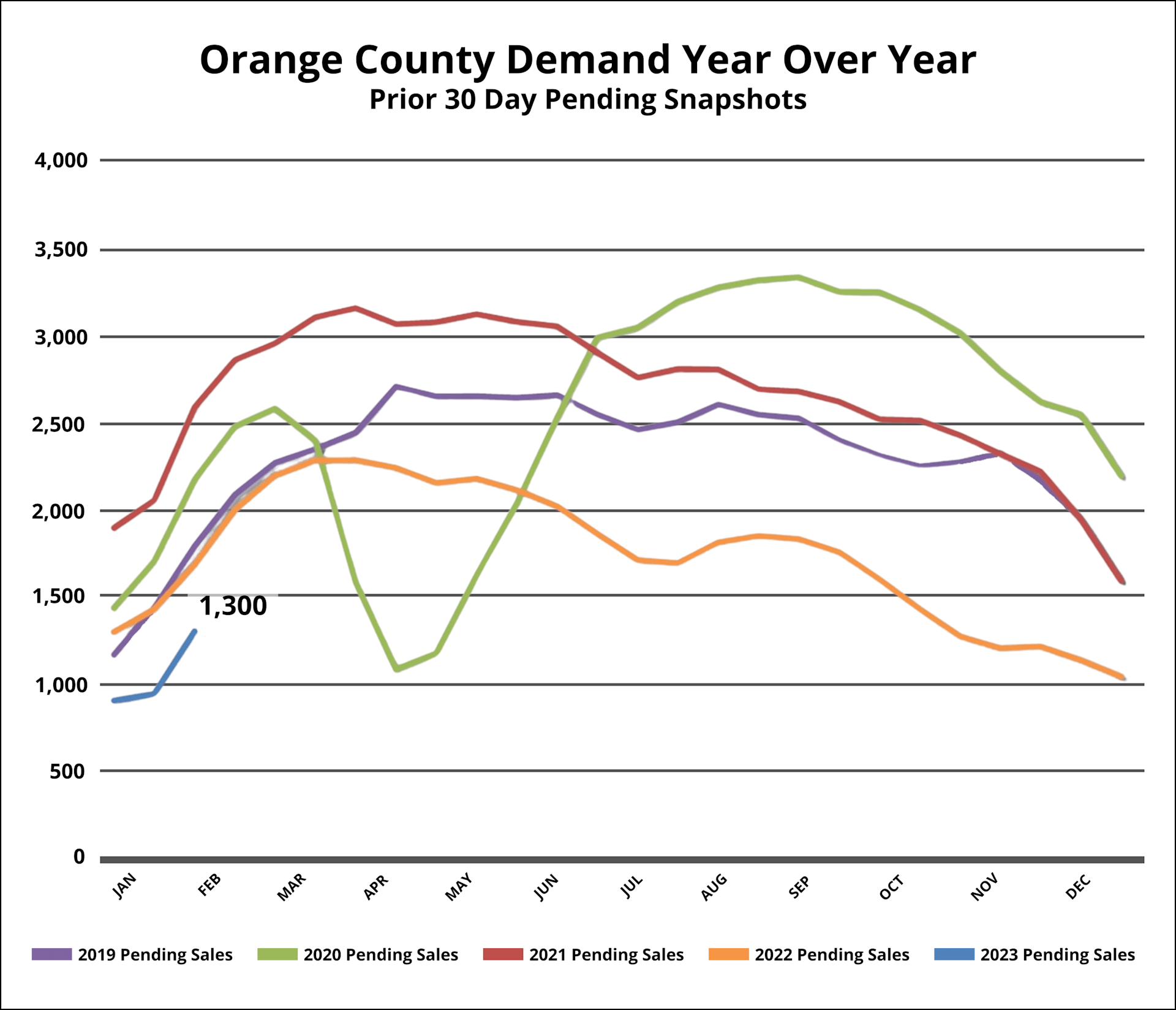 The demand was 1,683 units a year ago, which is 29% more than it is today, or an additional 383. In the three years prior to the implementation of COVID (2017-2019), the average number of pending sales was 2,083, which is 60% more than the current number or an extra 783.