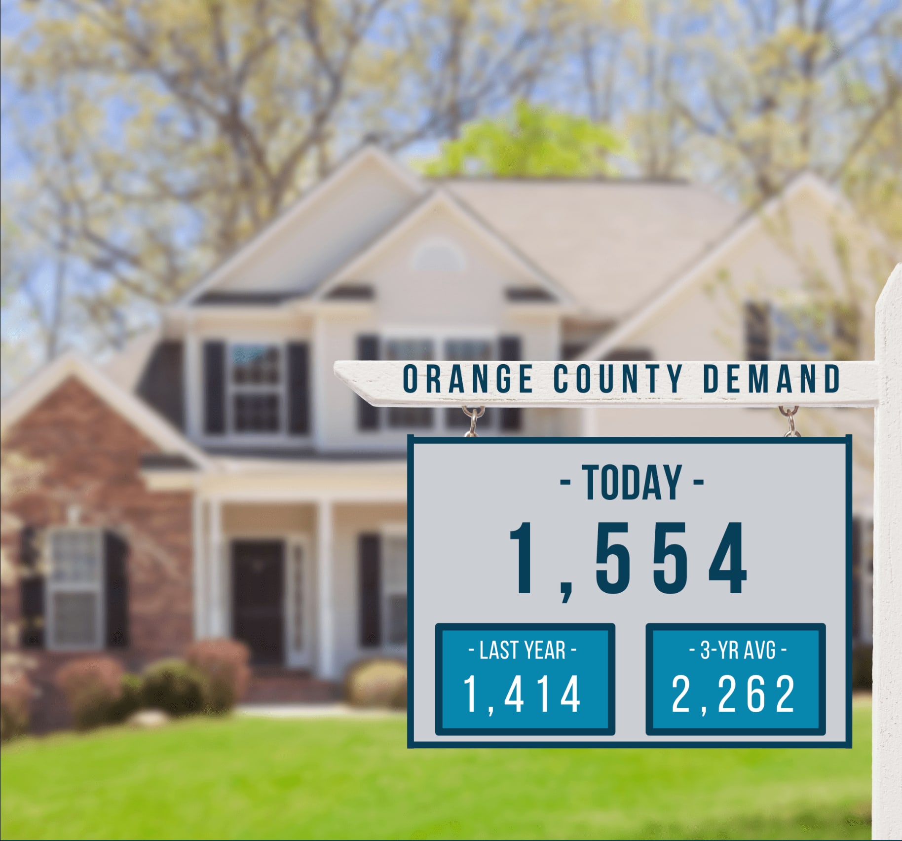 - With supply falling slightly and demand surging higher, the Expected Market Time, the number of days to sell all Orange County listings at the current buying pace, decreased from 78 to 71 days in the past couple of weeks, its most significant improvement since the start of February. It was 50 days last year, faster than today. The 3-year average before COVID (2017 to 2019) was 86 days, slower than today.
