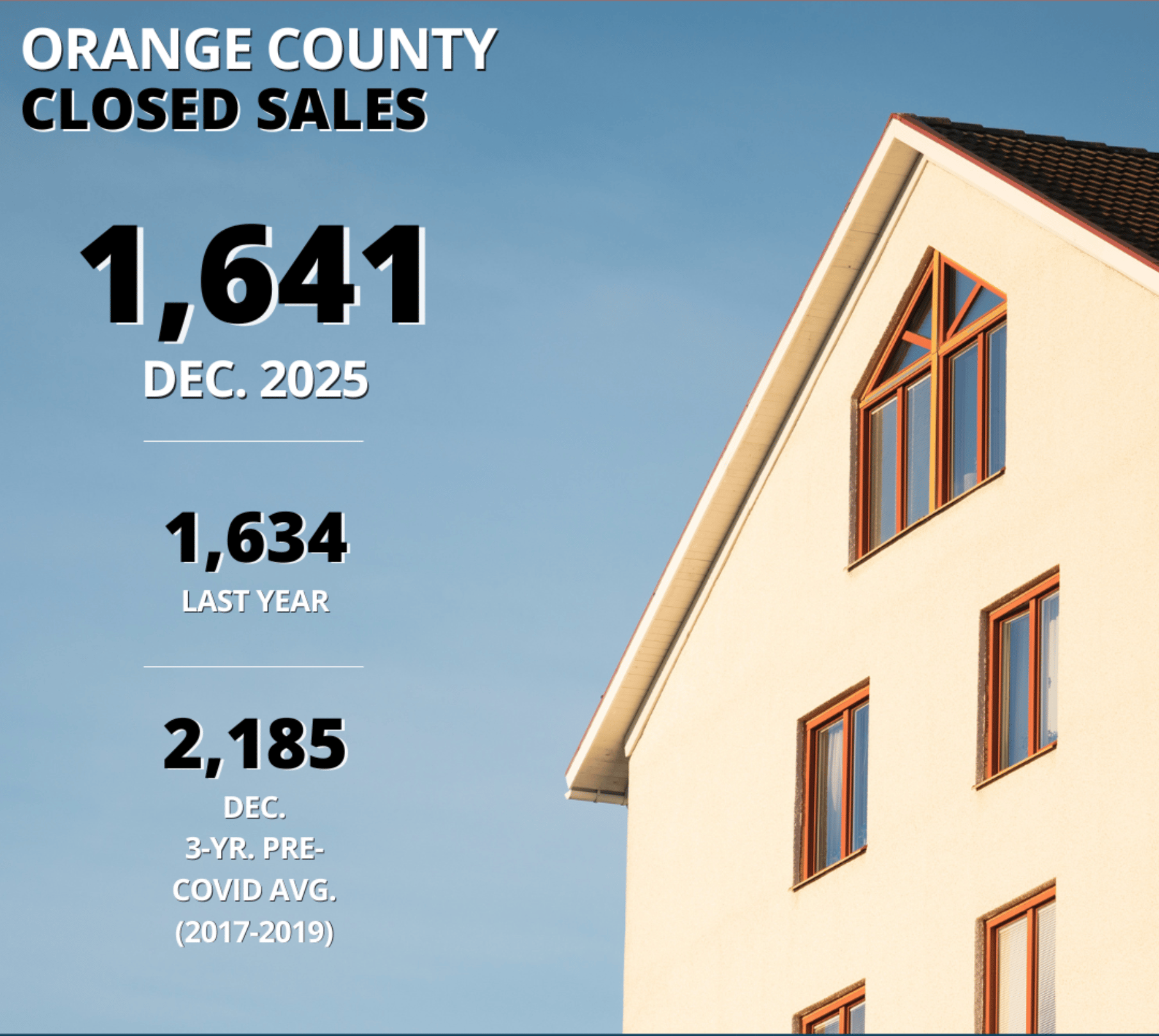 In the short term, the market has cooled slightly due to a brief rise in inventory and a temporary dip in demand, with detached homes and the luxury segment experiencing longer market times. However, this slowdown is typical for January and often precedes a period of steady improvement. As winter turns to early spring, buyer momentum is expected to strengthen across Orange County, gradually absorbing inventory and setting the stage for a more active selling season ahead.