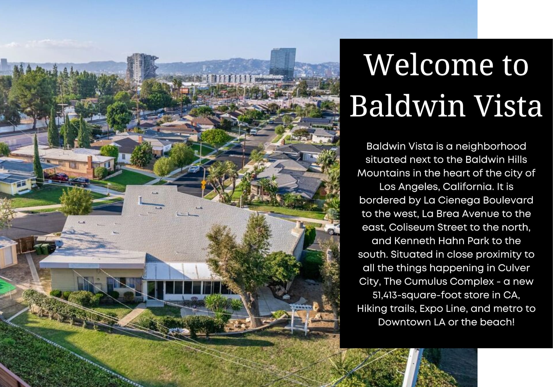 There is not much in the way of shopping or dining within Baldwin Vista but you'll find plenty of options in adjacent neighborhoods. The main attraction for outdoor activity would be the Baldwin Hills Scenic Overlook which is about 5 mins drive headed West. For those new to Baldwin Vista, its location is central. It has easy access to a variety of locations in Los Angeles like Culver City, Inglewood, Crenshaw, West Hollywood, and other parts of Los Angeles (because of its proximity to main streets/freeways). One of the best places in LA to watch the fireworks on the 4th of July and the perfect home for those seeking style, space, and serenity.